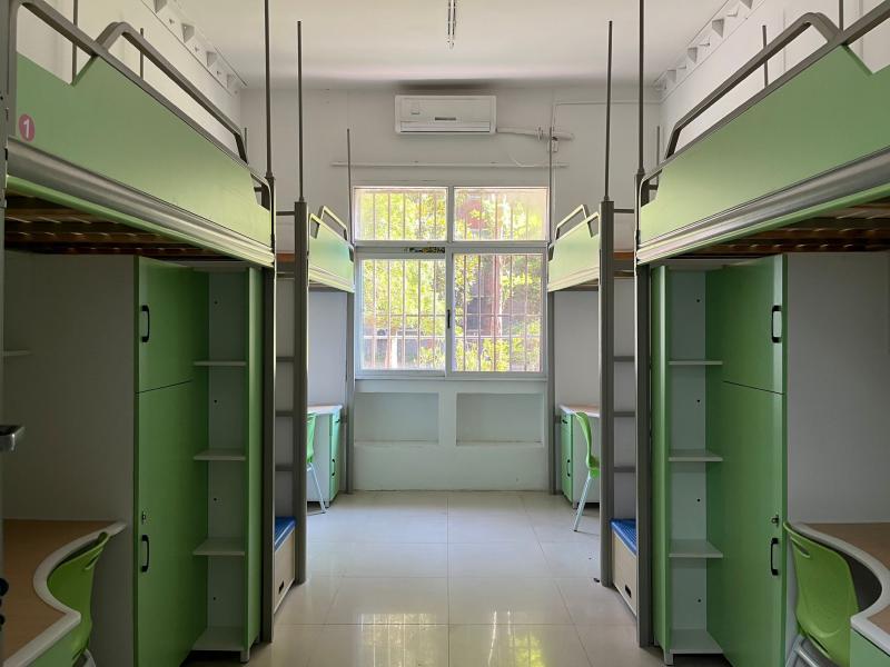 宿舍“功能化”再推进,助力学生成长更有效。逐步完成二级学院活动室、爱心室、自习室、接待室“进楼入室”;宿舍配套设施设备不断完善,云打印机,微波炉,洗衣机、洗鞋机、烘干机等逐步配齐,学生生活越来越便捷。关注学生个性化需求,设置无障碍房间及卫生间,为高个子学生改装床板等。2023年完成了28栋宿舍楼的淋浴房改造,完成热水入室的全覆盖。新增淋浴房89间,淋浴位860个,电热水器164台,电吹风140台,同步完成28间晾衣间建设,学生在洗浴、开水使用等生活体验不断提升。完成女生9#、10#宿舍楼“六改四”及家具更新,改造后的宿舍焕然一新。