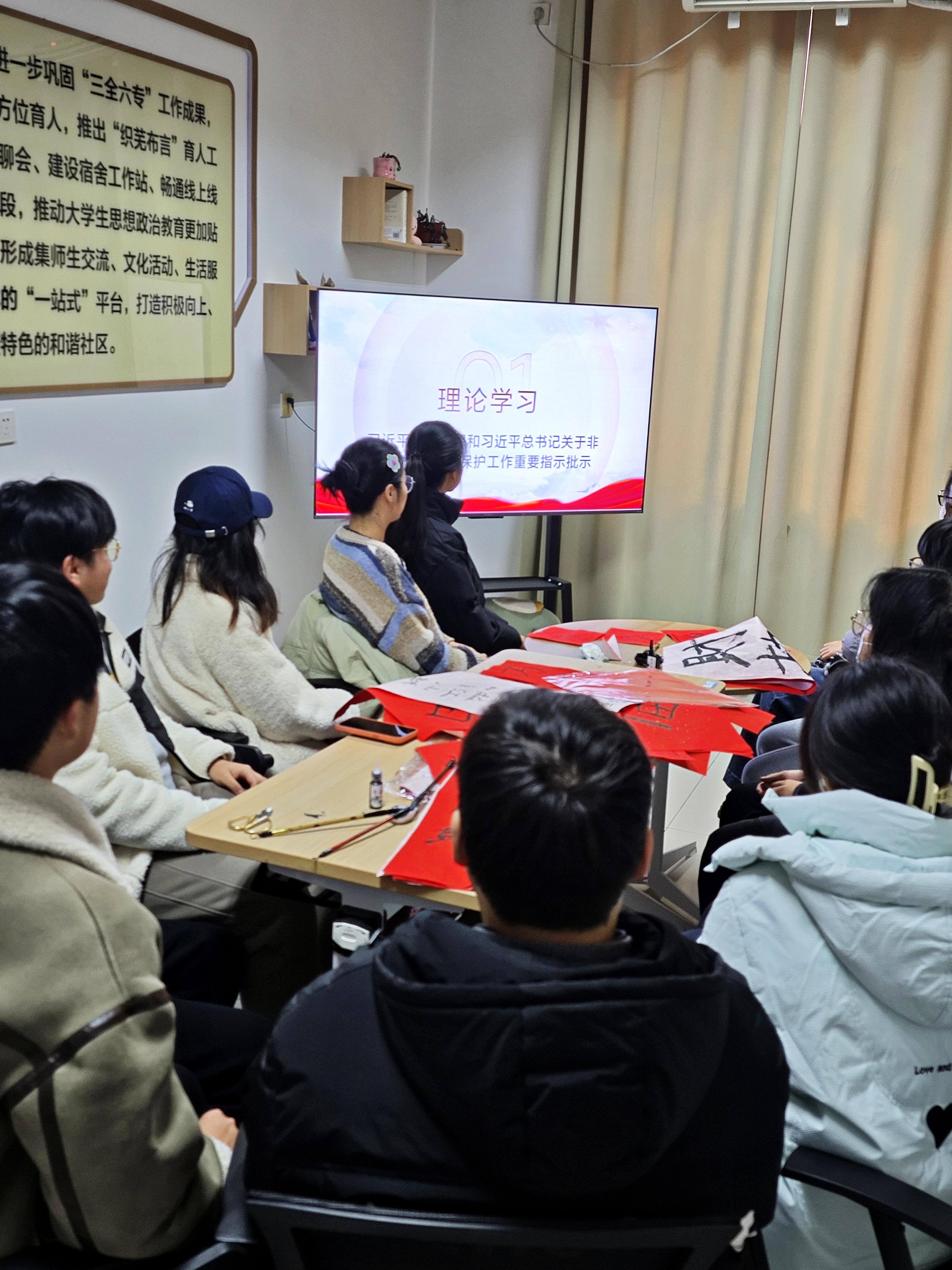 在新年钟声即将敲响之际,纺织服装学院纺织专业学生党支部于12月29日在织芜布言“一站式”学生社区工作站举办了一场别开生面的美育教育活动。活动以“墨香迎春,共创新篇”为主题,旨在进一步增强支部党员的凝聚力,引导青年党员传承中华优秀传统文化。