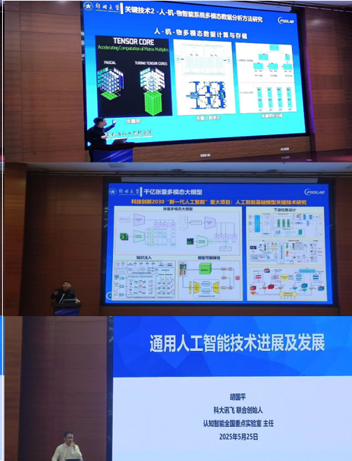 加拿大工程院院士、郑州大学学术副校长杨天若教授分享了《人机物智能:当系统与人工智能遇见人机物融合》的最新研究成果,提出了“张量人工智能”的创新理念,为认知推理开辟了新的路径;百度研究院副院长、加拿大工程院院士王井东则展示了“可控仿像视频生成”的前沿技术,并结合智慧交通、城市感知等实际应用场景,讲解了张量分析模型在人车路公共数据分析中的具体应用;科大讯飞股份有限公司创始人胡国平博士结合自身创业经历,分享了《通用人工智能技术在不同行业的实际应用》,强调AI应用的价值在于解决实际问题,推动产业效率变革,其深入浅出的讲解赢得了与会者的广泛赞誉。