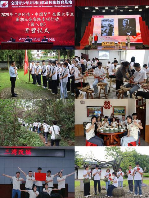 实践伊始,团队通过情景教学、专题授课、实地探访等形式,深入研习井冈山的峥嵘岁月,体悟革命精神,触摸“红味”初心。成员们在庄严的开营仪式,以饱满热情开启学习征程;在“三湾改编”情景模拟中,切身体会“支部建在连上”的组织力;在《井冈山斗争与井冈山精神》专题课上深刻理解红军“干革命,不怕苦”的坚定信念;在音乐党课中传唱红色旋律,永葆革命激情;在老乡家自作红军餐,体验军民鱼水情;在“祭奠井岗英烈”中坚定执着追理想;在学编“红军草鞋”中感受革命艰辛;在革命后代话初心讲家风中感悟精神传承。
