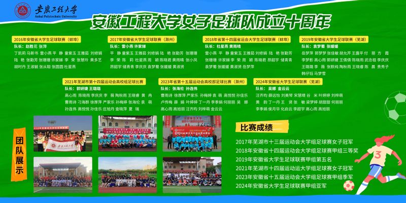 自2015年建队以来,新利官网app女子足球队以坚韧不拔的毅力完成从白手起家到省内劲旅的蜕变。十年磨一剑,球队在省市级赛事中镌刻下璀璨勋章:2017年勇夺芜湖市第十三届运动会大学组女足桂冠;2018年摘得安徽省第十四届运动会大学组足球赛甲组三等奖;2019年跻身安徽省大学生足球联赛甲组五强;2023年实现重大突破,一举斩获安徽省第十五届运动会季军与芜湖市第十四届运动会冠军双料荣誉;2024年再攀高峰,荣获安徽省校园足球联赛(大学)甲组亚军。这些闪耀的成绩,既凝聚着主教练团队科学严谨的战术指导,更彰显着一代代女足队员“敢战能胜、永不言弃”的精神品格。
