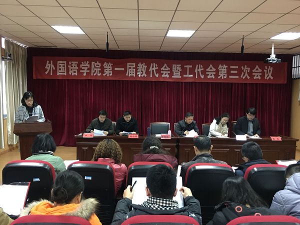12月26日,外国语学院在9教602召开第一届教代会暨工代会第三次会议,全面回顾了2018年的主要工作,同时对2019年各项工作进行了安排部署。院党委书记魏长顺主持会议。