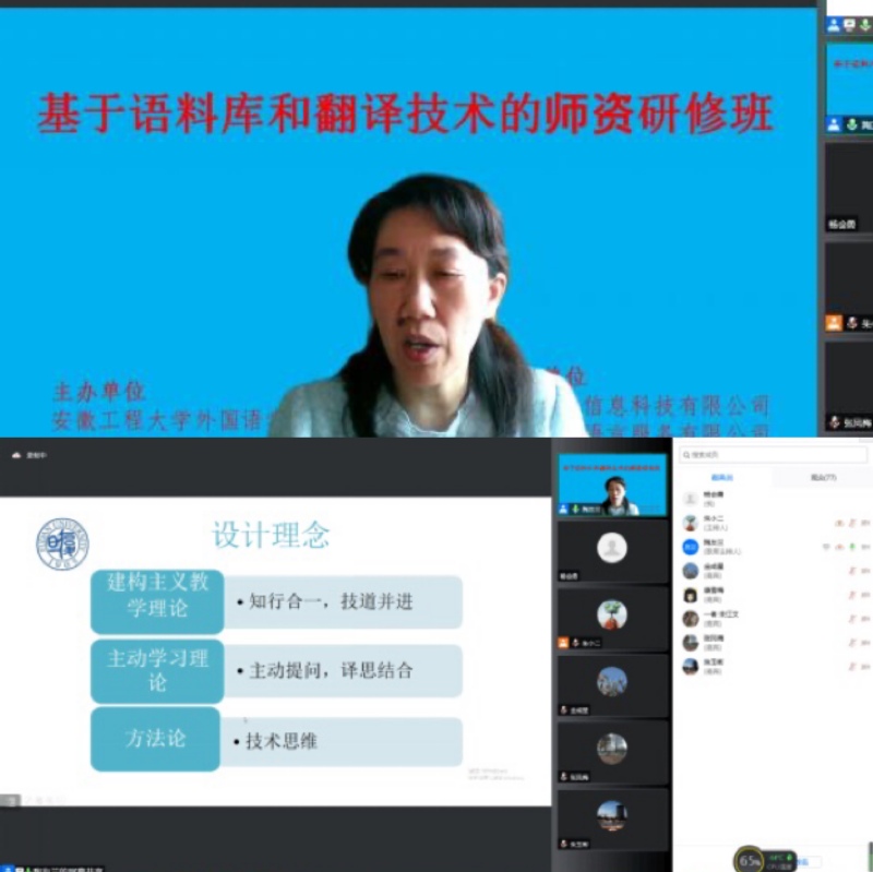 6月19日,学院成功在线上举办了基于语料库和翻译技术的师资培训系列讲座。本次活动作为教育部产学合作协同育人项目的一项重要任务,得到上海一者信息科技有限公司和安徽译创语言服务有限公司联合协办支持。复旦大学陶友兰教授,安徽大学朱玉彬教授,上海一者信息科技有限公司高级运营经理宋江文女士应邀作主旨报告,院长金成星教授、副院长唐雪梅教授、硕士点负责人张凤梅博士分别主持。来自省内高校的120余名师生代表参加了学习交流。