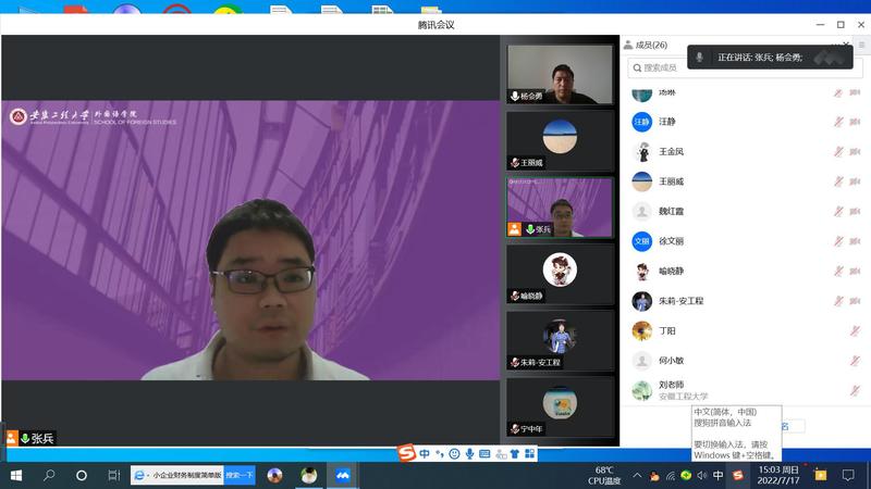 7月17日下午3点,外国语学院大学英语第一教学部召开了暑期师德师风专项学习,会议以腾讯会议线上方式召开,教学部主任杨会勇主持会议,教学部全体教师参加。