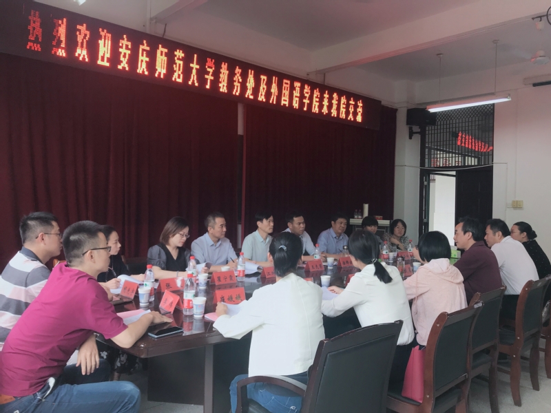 9月22日,安庆师范大学教务处、外国语学院领导及骨干教师一行十人来我院交流大学外语教学改革工作,学校教务处和外国语学院负责人及相关骨干教师参加交流会。交流会由院长金成星教授主持。