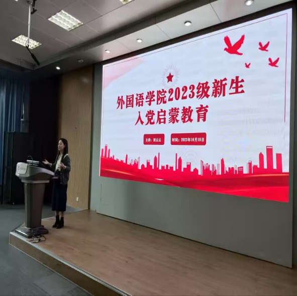 为巩固学习贯彻习近平新时代中国特色社会主义思想主题教育成果,落实立德树人根本任务,帮助广大新生增强对党的认识和了解,教育引导青年学生端正入党动机、积极向党组织靠拢,外国语学院以“五个一”为抓手,在2023级新生中开展好入党启蒙教育。