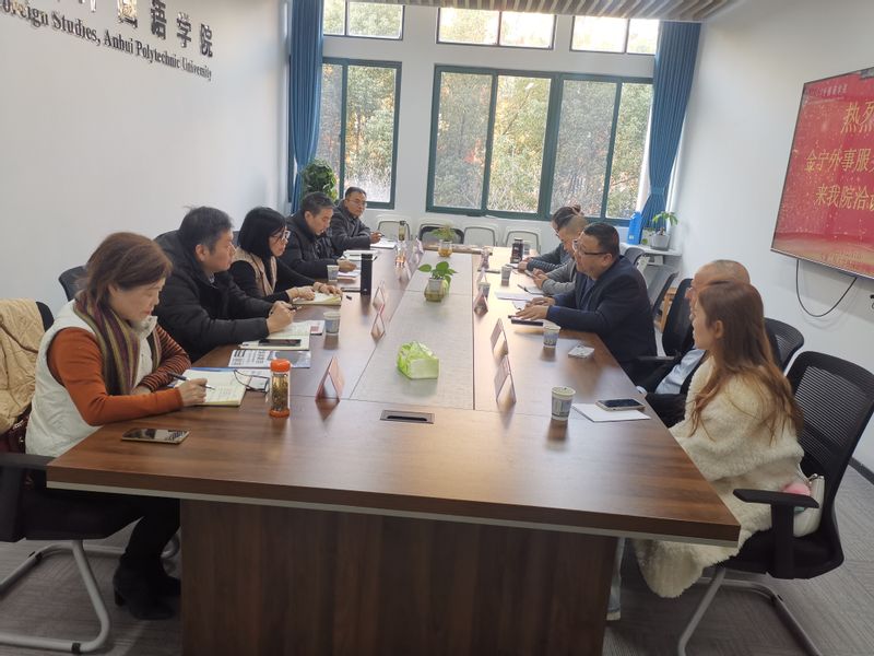 12月11日上午,应外国语学院邀请,安徽金宁外事服务有限公司总经理吴云飞、培训中心主任后德慧、学术总监Gary(英国籍)一行五人来校洽谈校企合作事宜。继续教育学院院长许钢,国际交流与合作处副处长张文明以及继续教育学和外国语学院相关负责人出席,外国语学院副院长(主持工作)唐雪梅主持座谈。