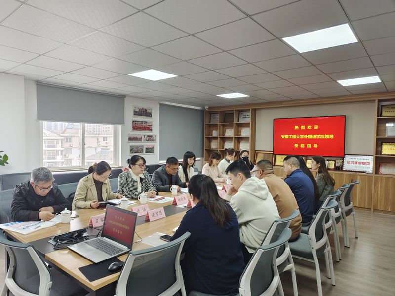 4月12日,外国语学院副院长李新国带领学校朱琦名师工作室和学院教学团队代表前往安徽金宁外事服务有限公司开展校企合作交流,总经理吴云飞热情接待了李新国一行。
