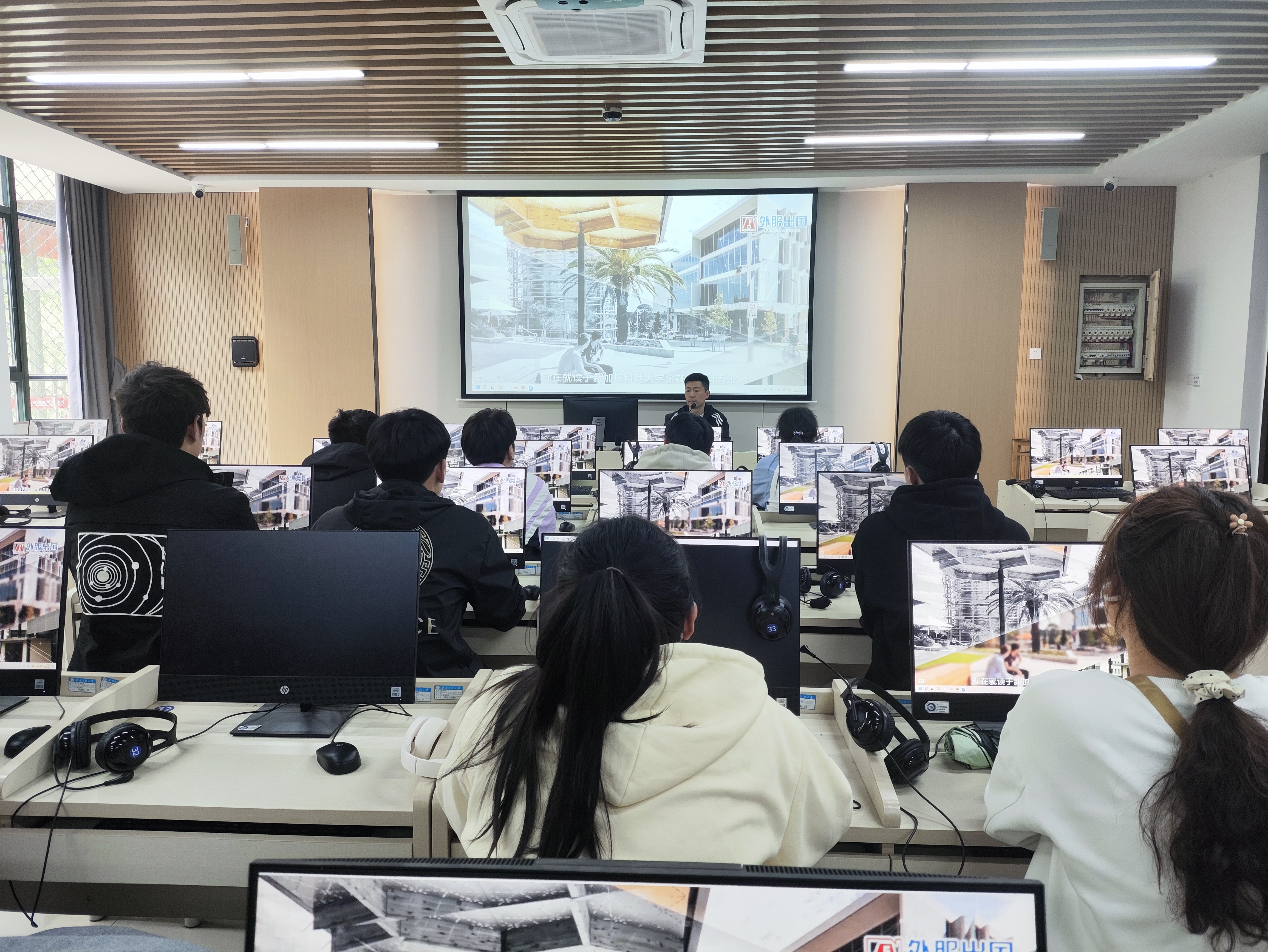为引导学生提早做好升学规划,拓宽升学渠道,外国语学院“企业课堂”于2024年4月10日下午在9教103开展本科生多元化升学及雅思考试培训讲座。此次讲座由安徽省金宁外事服务有限公司留学中心经理宣翔主讲。各年级本科生40余人参加讲座。