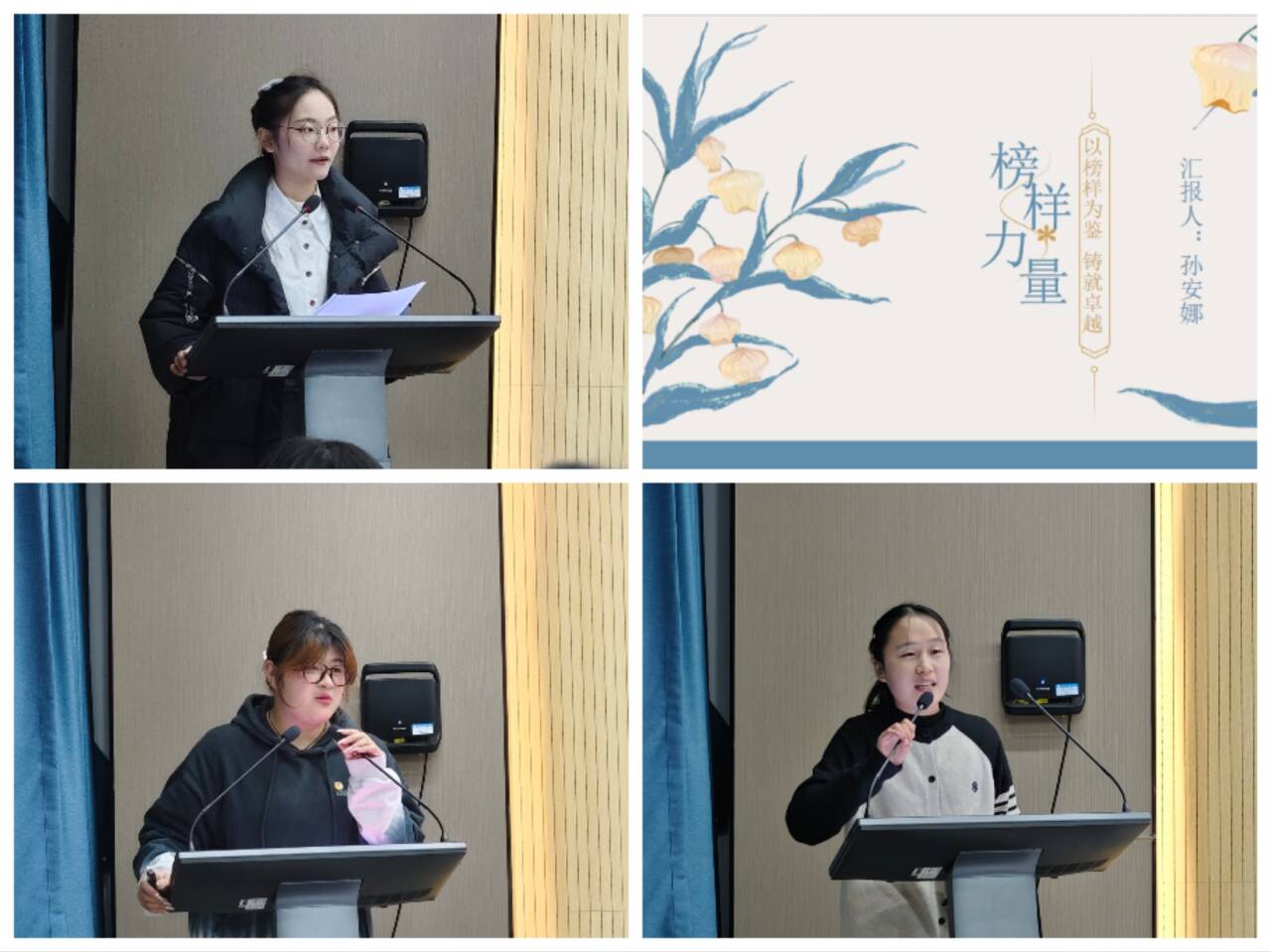 校青年讲师团成员机器人243班孙安娜同学以“榜样的力量”为题,分享了杂交水稻之父袁隆平、全国优秀教师张桂梅、“北斗女神”徐颖、小米集团创始人雷军的榜样事迹,号召广大团学骨干学习榜样,并成为榜样。