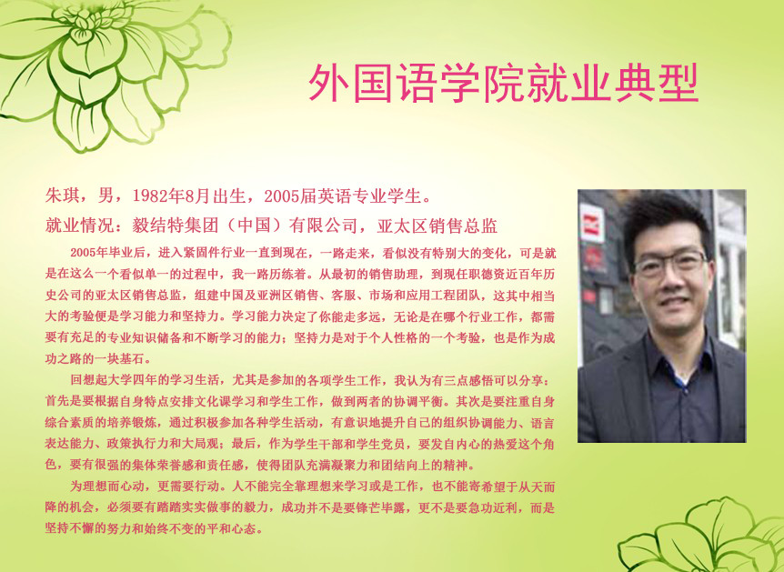自我校建立以来,外国语学院便涌现大批优秀校友,他们以优异的成绩从母校毕业