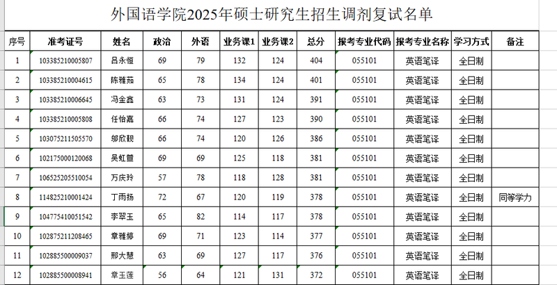 外国语学院2025年硕士研究生招生调剂复试名单