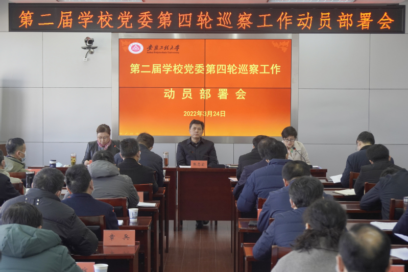 本网讯 3月24日上午,学校党委在行政楼1121会议室召开第四轮巡察工作动员部署会,传达学习习近平总书记关于巡视工作的重要讲话精神,部署学校第四轮巡察工作。校党委书记、巡察工作领导小组组长张志宏出席会议并作动员讲话。校党委常委、纪委书记、监察专员、巡察工作领导小组副组长王红月主持会议。校巡察工作领导小组成员、巡察组全体成员、被巡察单位主要负责人、巡察办人员参加会议。