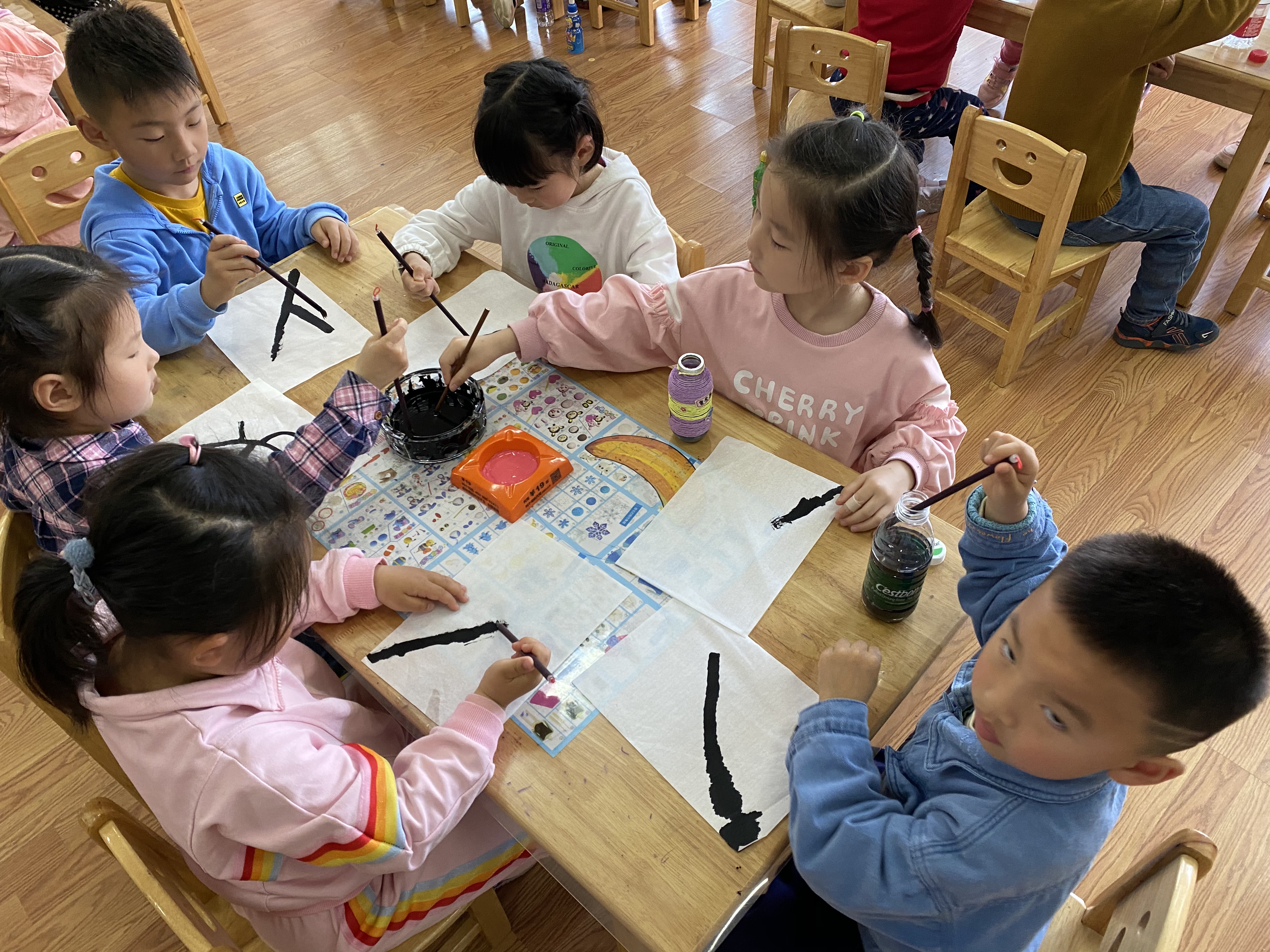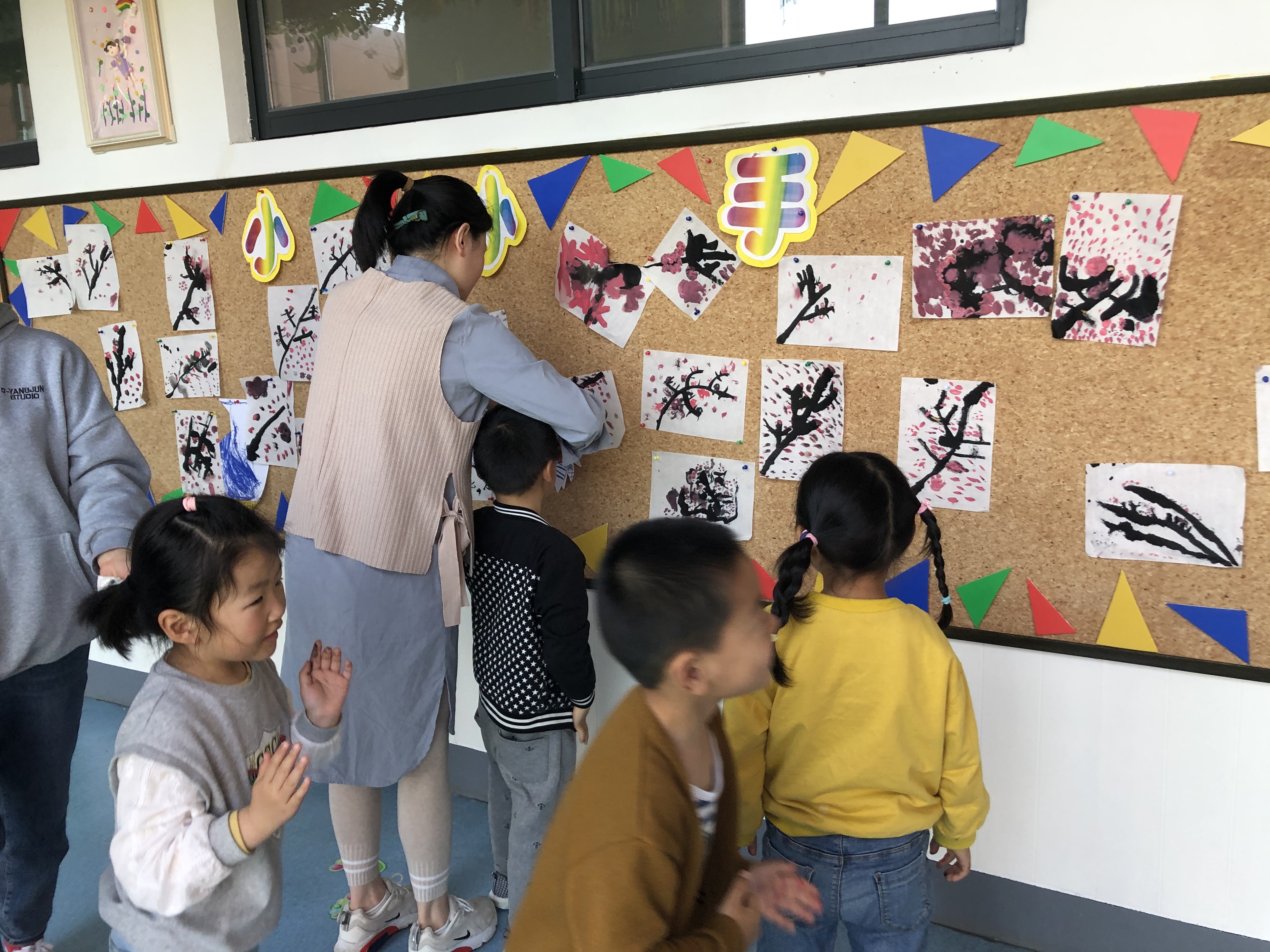 李老师上的是美术活动《桃花朵朵》。在老师认真细致地介绍下,辅以循序渐进的提问方式,让小朋友们认识并了解了中国画的艺术特色。活动中,小朋友们大胆尝试用简单的笔法和墨法画桃花,孩子们对水墨画充满了兴趣,画出来的桃花也充满了童趣。