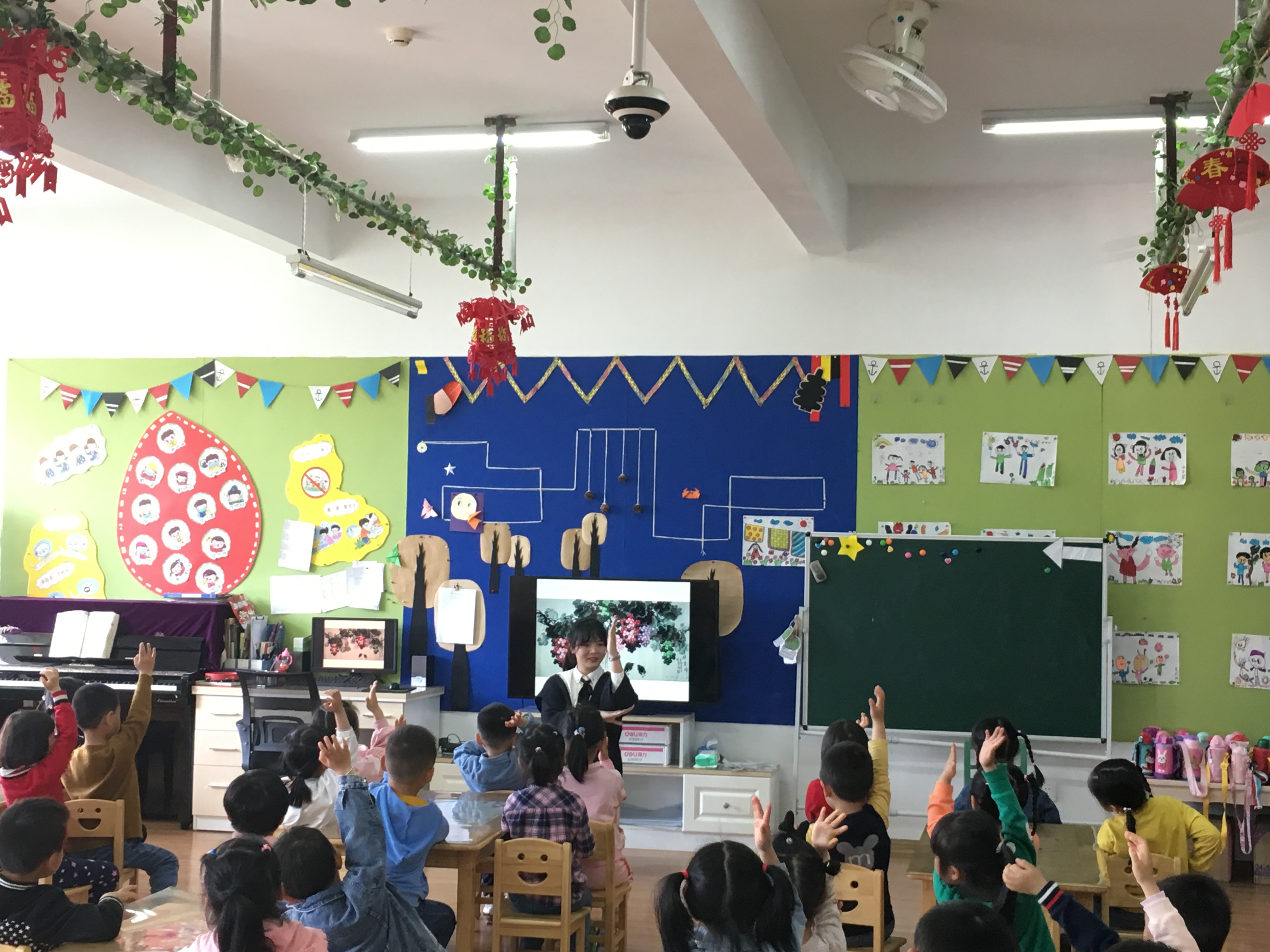 周老师上的是音乐活动《郊游》,她综合运用图谱、问答、节奏练习、钢琴伴奏等形式,耐心细致的教授小朋友们学唱儿歌,“走走……走走走,我们小手拉小手,走走走走走一同去郊游……”快乐的童声飘荡在教室内。