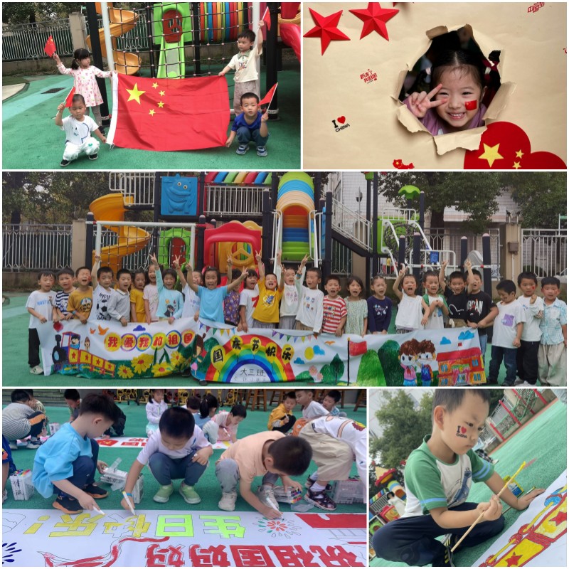 红红中国心,暖暖爱国情。在祖国母亲74周年华诞到来之际,为发扬红色传统,厚植爱国主义情怀,校附幼开展了一系列爱国主义节庆活动。班级老师通过绘画、手工、唱歌等活动方式,让孩子们了解国旗、国歌、国徽等知识,并清楚国庆节的由来以及节日意义等。小朋友们也纷纷用自己独特的方式为祖国妈妈庆生:他们用稚嫩的小手为红旗贴上五颗星星;他们扬起笑脸,自豪地与国旗同框合影;他们拿着画笔,在画卷上认真描绘着祖国的山河美景;他们用甜美的嗓音,大声地歌唱:“我和我的祖国,一刻也不能分割……”。