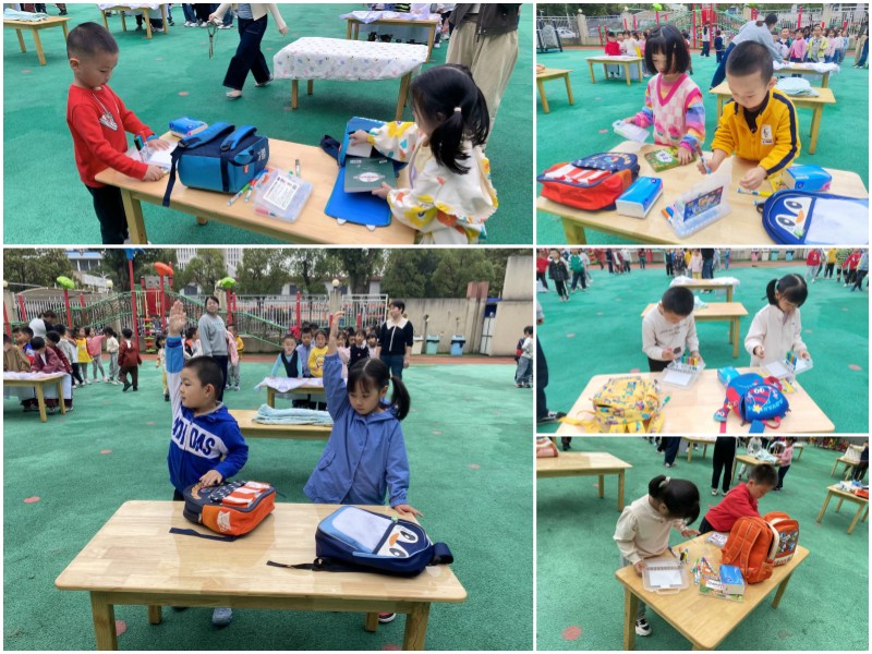 中班年级组在经过班级选拔后,每班派出了七位小选手参加比赛。比赛的内容为整理、收纳散落在桌面上的各类文具用品。比赛过程中,小选手们全神贯注、专心致志,收纳物品时,迅速利落且有条不紊。班级的其他小朋友也在场外大声为他们加油助威,现场气氛热闹极了!