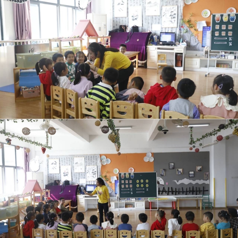 集体教学活动是幼儿获取知识、技能的重要途径。老师们根据幼儿的年龄特点及认知水平,运用游戏化教学手段,让孩子们在游戏中探索,在操作中获取知识。校附幼大一班邀请家长们一起走进课堂,走进富有童趣而又精彩的集体教学活动。首先强老师展示的是数学活动《有趣的车牌》,她将抽象的数字和快乐的游戏相结合,让孩子们初步了解数字排列的一些方法,通过孩子们自己设计车牌,孩子们感知到探究数字排列组合的规律性。在互动的过程中,强老师能够及时鼓励和夸奖,也能把规则意识传递给孩子们,孩子们既学习了知识,又体验数字的不同组合带来的乐趣。接下来是李老师带来的音乐活动《小熊吃蜂蜜》。老师课前做了精心设计,用甜美生动的声音,抓住了孩子们的视线,她鼓励孩子们用表情、肢体动作表现品尝各种味道后的感受。孩子们和老师围坐在一起争相举手,积极参与,尽情体验音乐游戏带来的乐趣。老师们准备充分,活动内容丰富,孩子们表现得积极又快乐,家长们在信息反馈中给予了充分的肯定和赞誉。