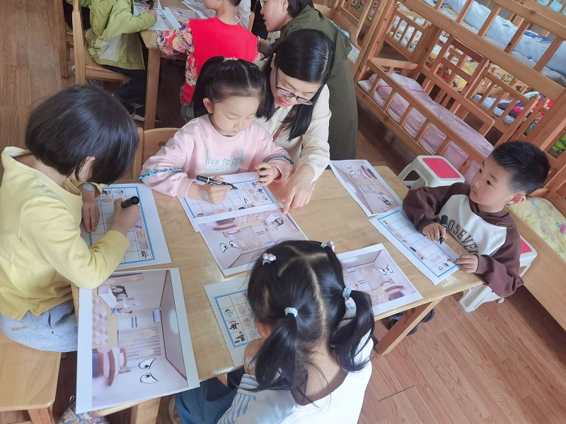 在教育教学活动环节之科学活动《指纹破案》,季老师寓科学知识于有趣的案件中,通过案件剧情的逐步展开,引导孩子们观察和对比现场指纹,了解指纹的特点和在生活中的作用,在感受推理游戏的智慧和趣味的同时,启发了孩子们的主动思考,培养了孩子们观察能力和专注力。