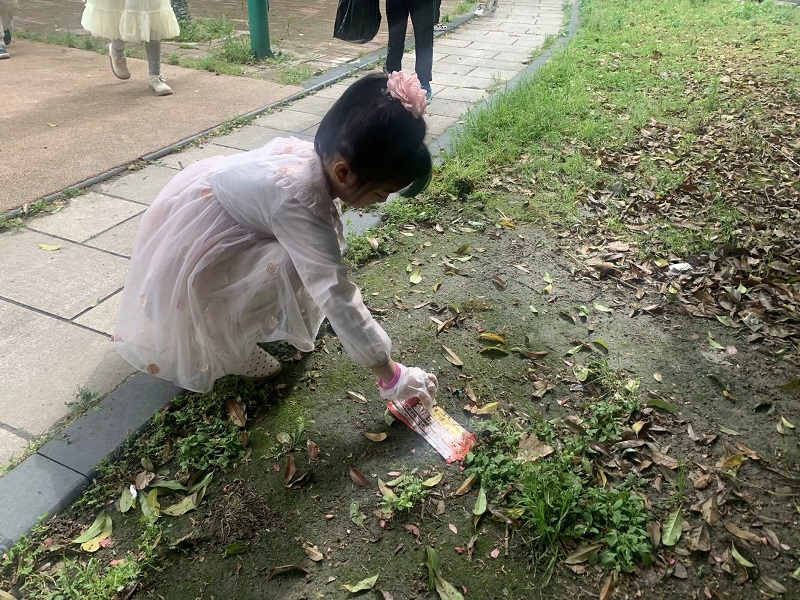 活动开始前,老师们从保护环境的重要性以及随地乱扔垃圾的危害等方面给孩子们进行了讲解,引导孩子们保护环境、热爱劳动,树立劳动最光荣的意识。接着大班的孩子们在老师和物业保洁阿姨们的带领下,对幼儿园周边的公园、广场进行了垃圾清理。